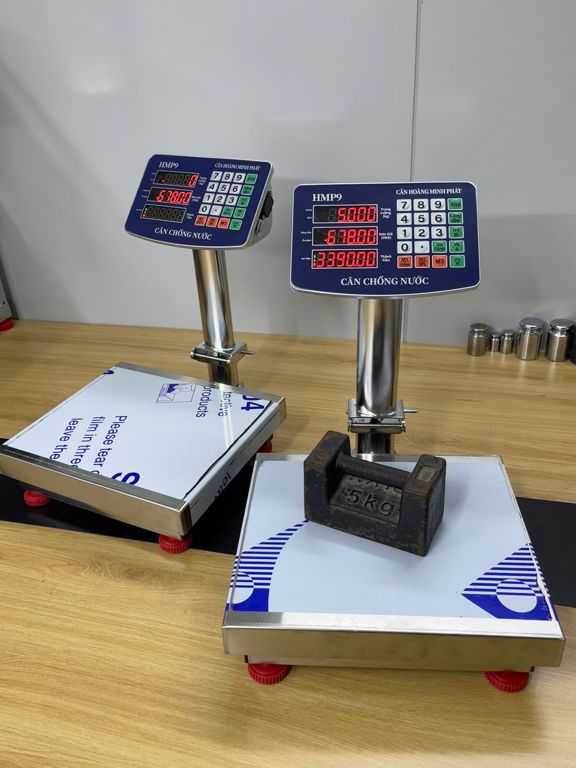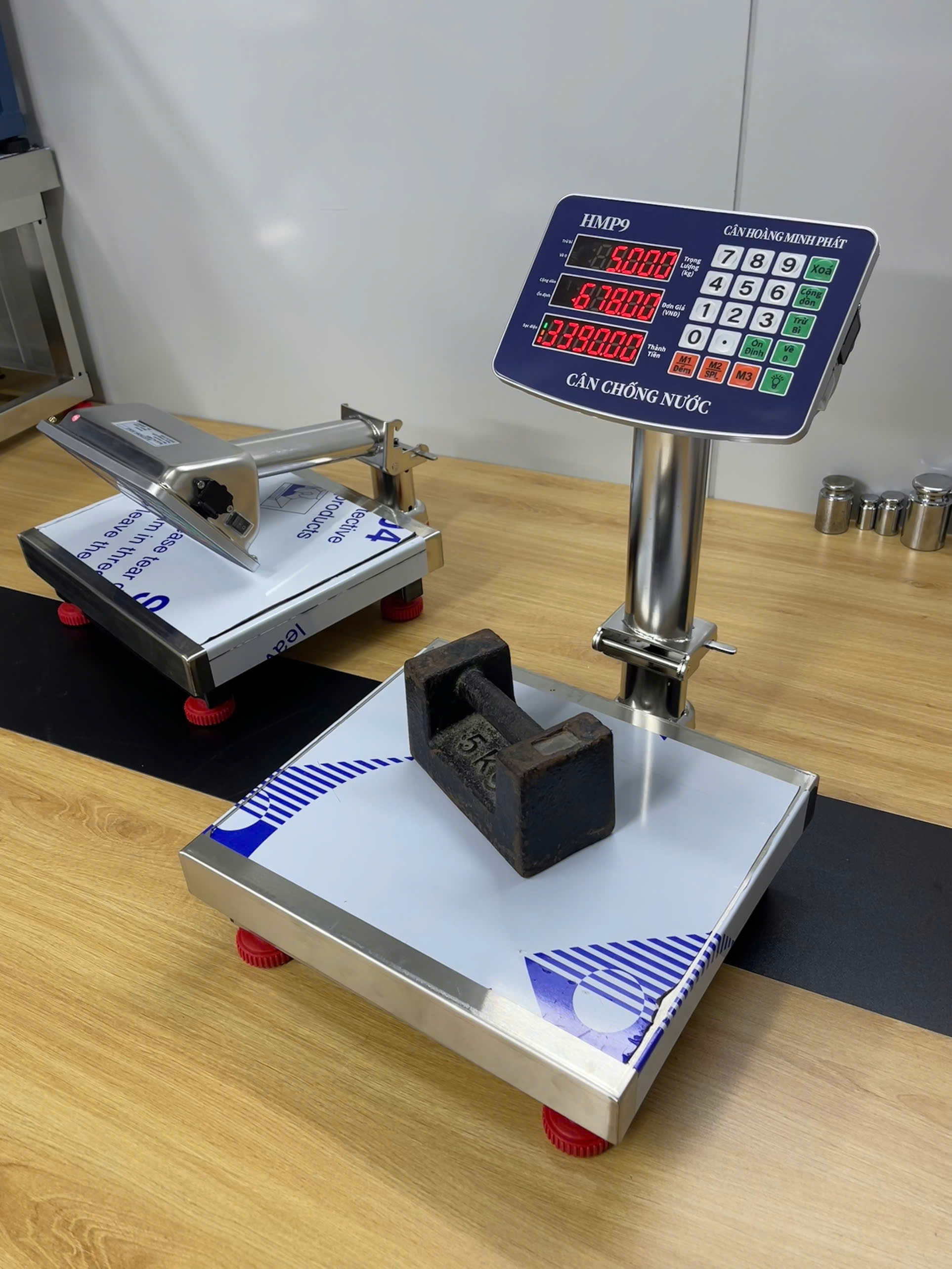 Cân điện tử tính tiền 60kg HMP9 INOX chống nước. Thương hiệu CÂN HOÀNG MINH PHÁT - Phím tiếng việt