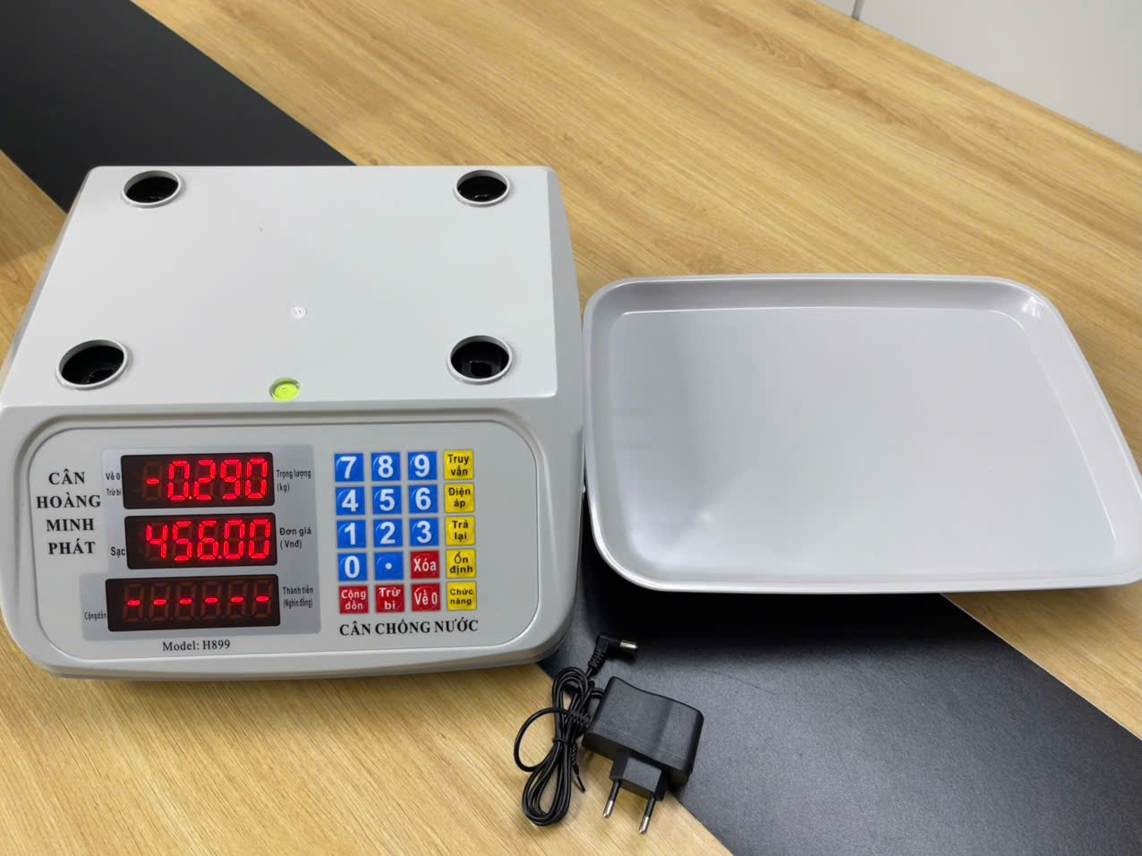 Cân điện tử tính tiền chống nước 30kg H899. Cân hải sản, hàng hóa, rau củ quả thương hiệu Cân Hoàng Minh Phát. Thối tiền