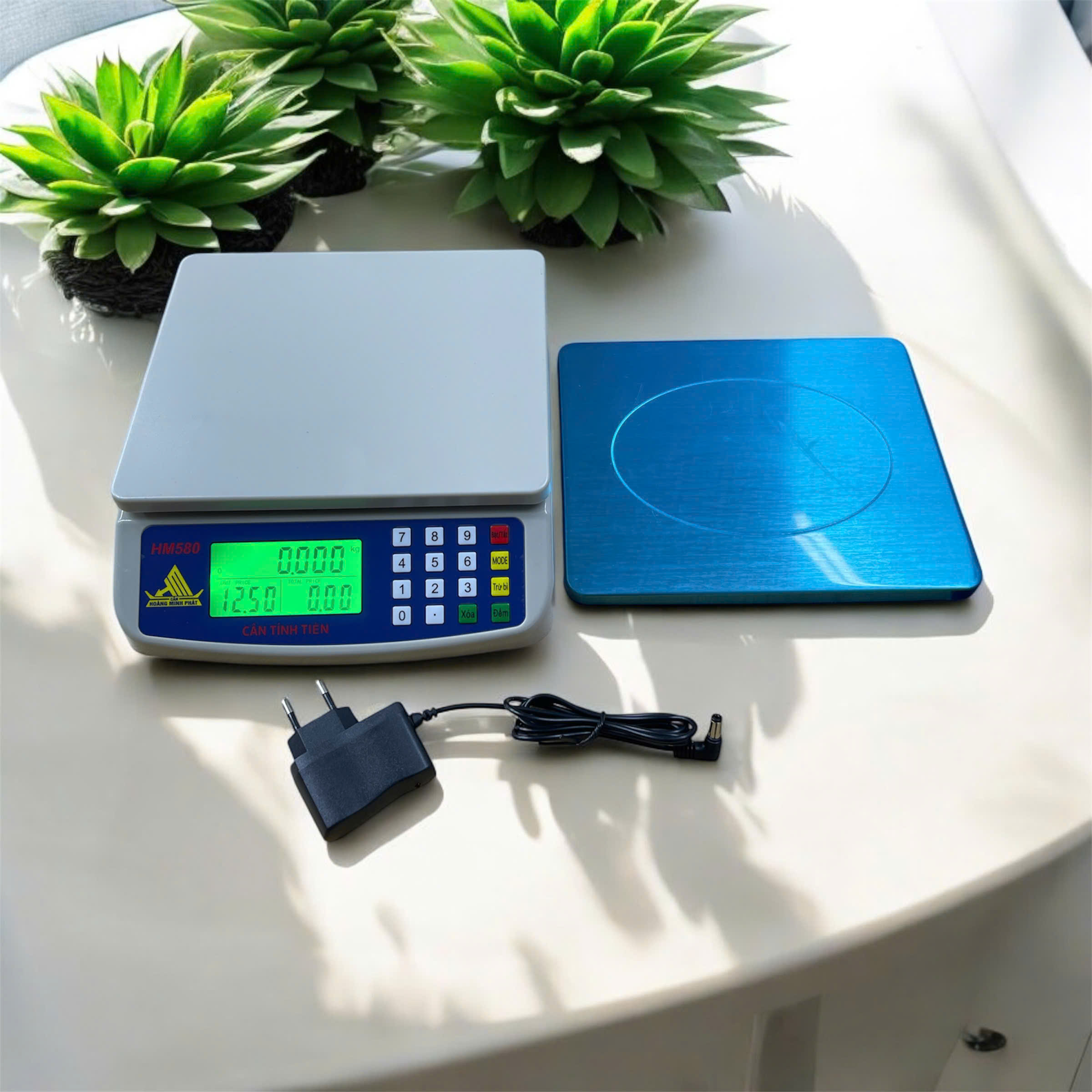 Cân điện tử 25kg/1g tính tiền HM580. Mâm cân INOX - Kèm sạc. Thương hiệu CÂN HOÀNG MINH PHÁT. Phím tiếng việt