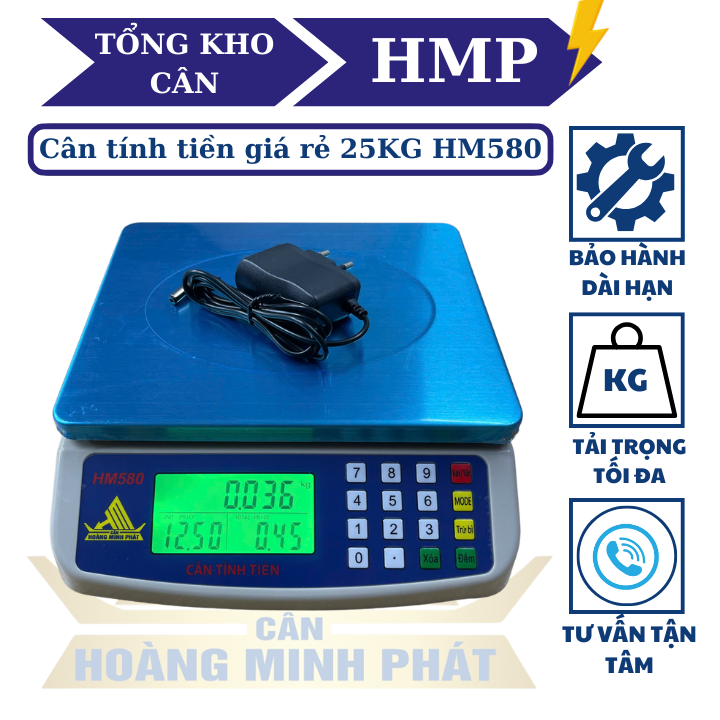 🛒 CÂN ĐIỆN TỬ TÍNH TIỀN 25KG HM580 | MÂM INOX | PHÍM TIẾNG VIỆT | KÈM SẠC