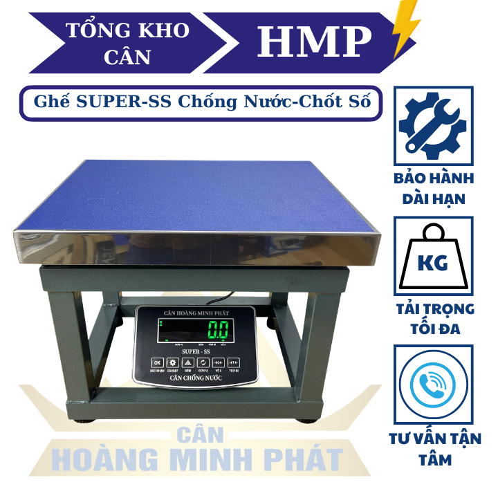 Cân ghế điện tử 300KG chống nước, chốt số SUPER-SS led xanh. Thương hiệu CÂN HOÀNG MINH PHÁT