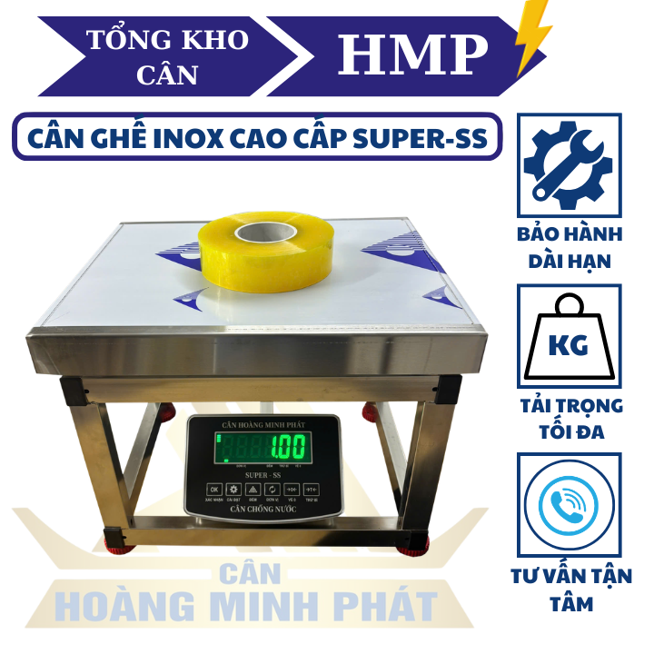 🛒 CÂN GHẾ ĐIỆN TỬ 350KG INOX SUPER-SS | CHỐNG NƯỚC | LED XANH